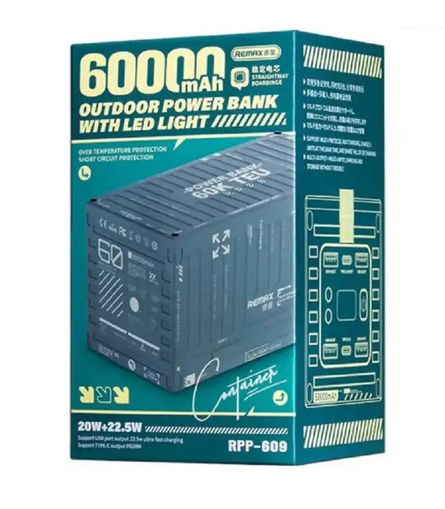 Завдяки підтримці технологій Power Delivery 20 Вт і Quick Charge 3.0 22.5 Вт, REMAX RPP-609 60000mAh забезпечує швидку та ефективну зарядку для сучасних смартфонів і планшетів.